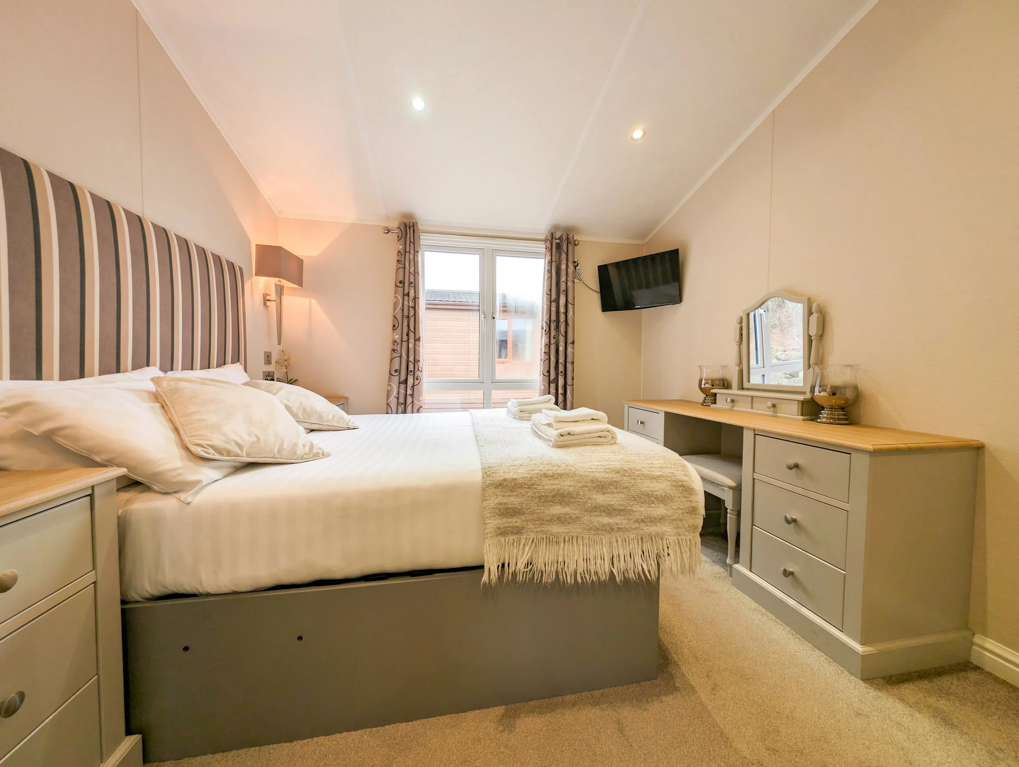 Capernwray 16 is all about first impressions, you’ll be amazed by this holiday home from the minute you turn the key in the door. Exuding glorious lakeside views with a private sailing jetty and modern impeccable interior décor. With three generous bedrooms, a large master with an incredible en-suite and shower, a second double bedroom and twin room; all with the added benefit of TV’s. The open kitchen & diner is well equipped with a dishwasher, wine cooler, microwave, gas range cooker and oven. Alongside a main master bathroom with a bath and shower overhead, this lodge would be ideal for that longed for and well deserved getaway. When staying in Caperwray 16 you have complimentary Wi-if and private parking to make your trip complete.