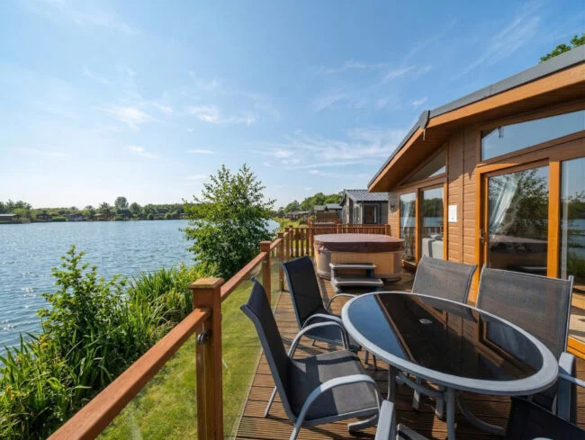 It’s time to open a bottle of fizz or desired soft drink and take a dip in a hot tub with exquisite views. Situated on the lodges private outdoor area, the glass front decking grants views across the lake to the 5* facilities.