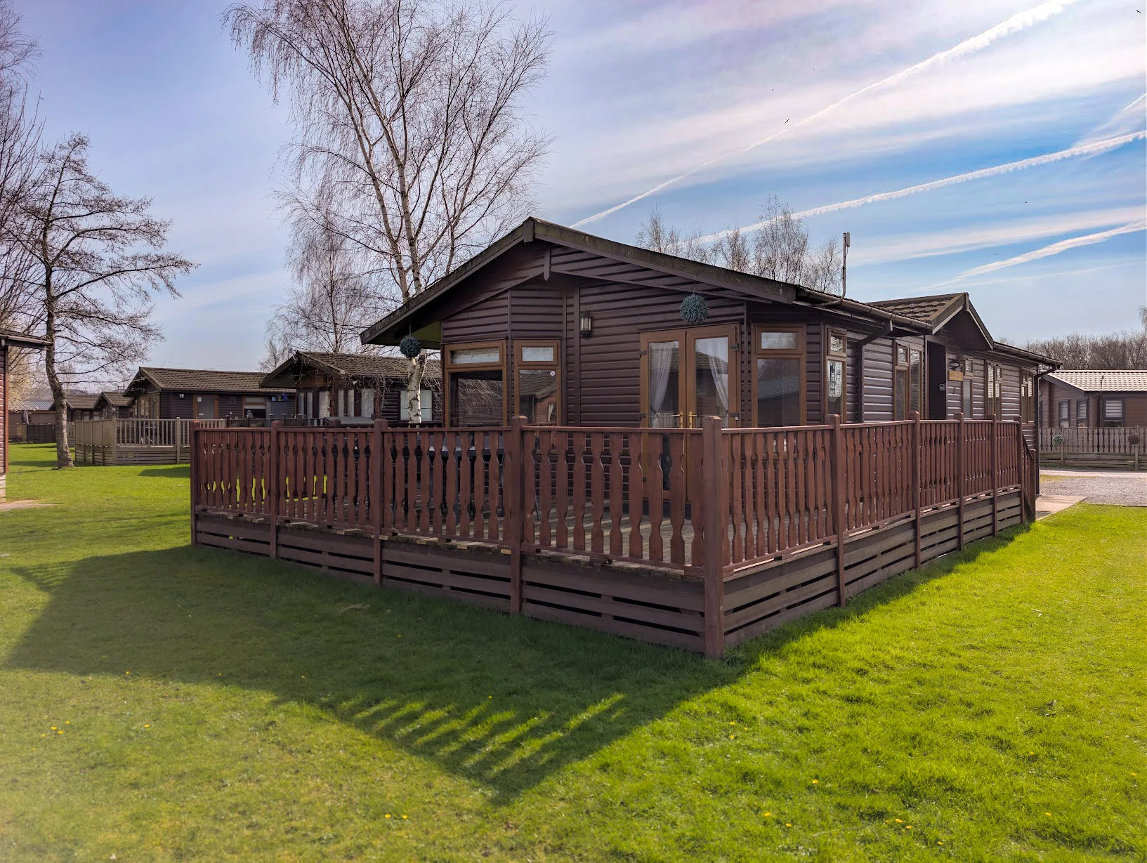 The lodge offers a gated decking with partial views of the lake, garden furniture perfect for enjoying the sunsets over the hills whilst dining alfresco.