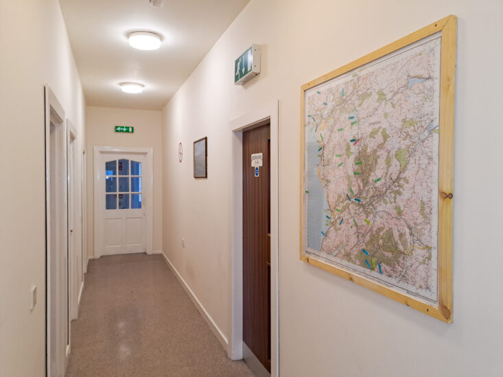There are Ladies and Gents shower rooms with a toilet and washbasins in each and there is an additional toilet near to the kitchen. Please note: towels are not provided.