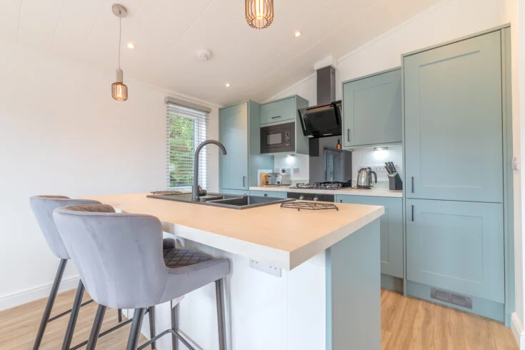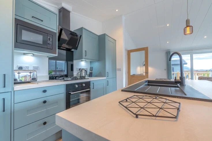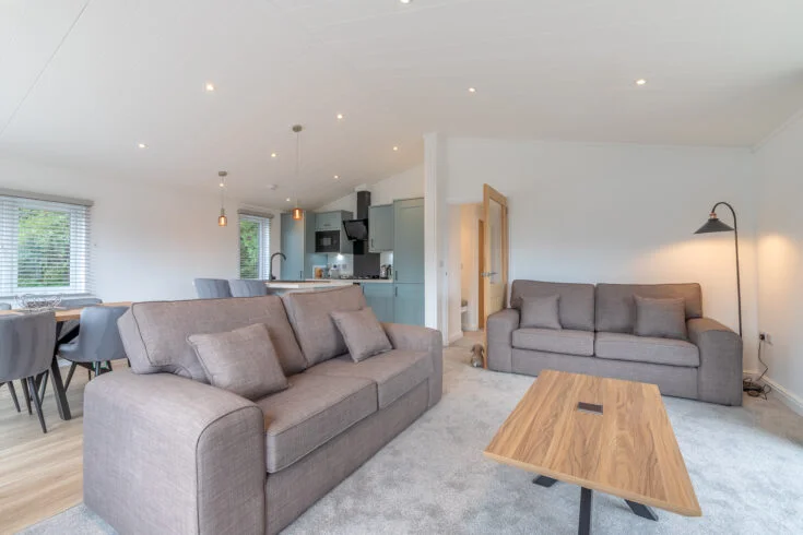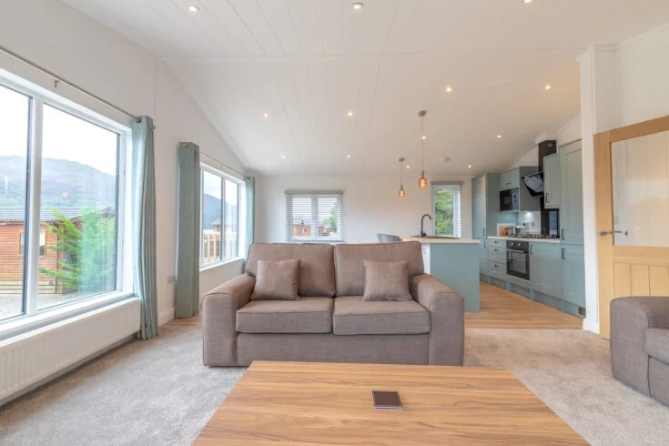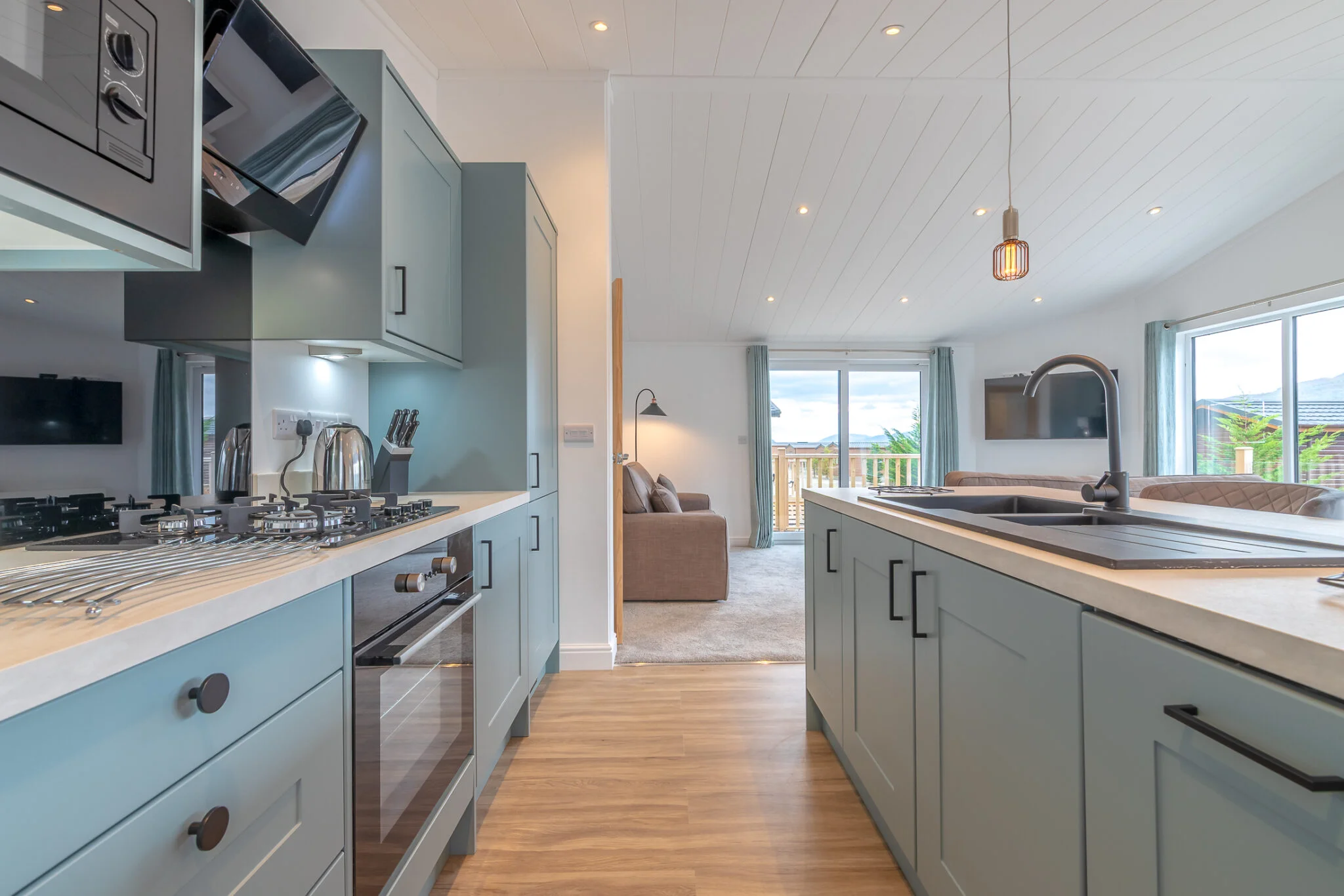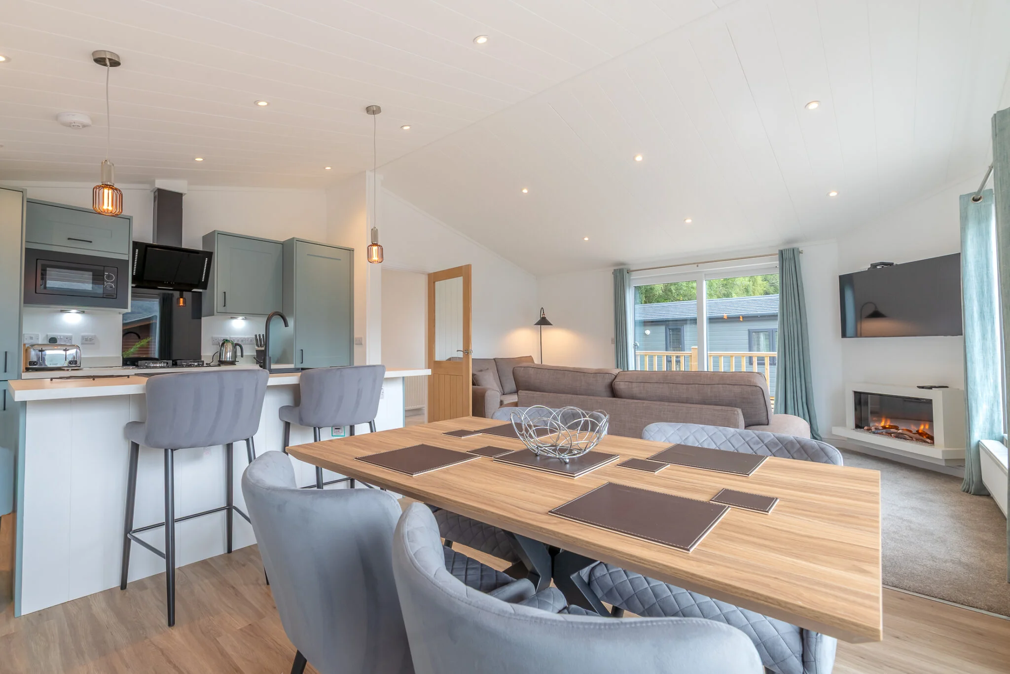 A large professional kitchen and open plan dinging and living space complete the unit inside and a wraparound decking gives you all the space you need to take in the naturally stunning back drop.