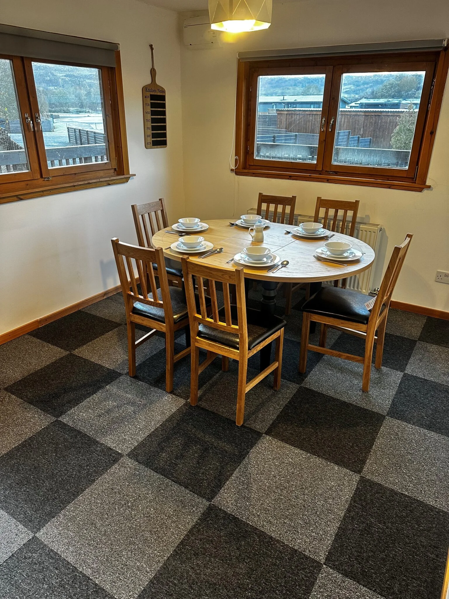 The cabin features a fully equipped kitchen with everything you need to cook dinner for all the family. The open plan lounge and dining is very spacious to relax in during the day or unwind at night. Sliding doors open out onto the large decking with uninterrupted views of the stunning valley.