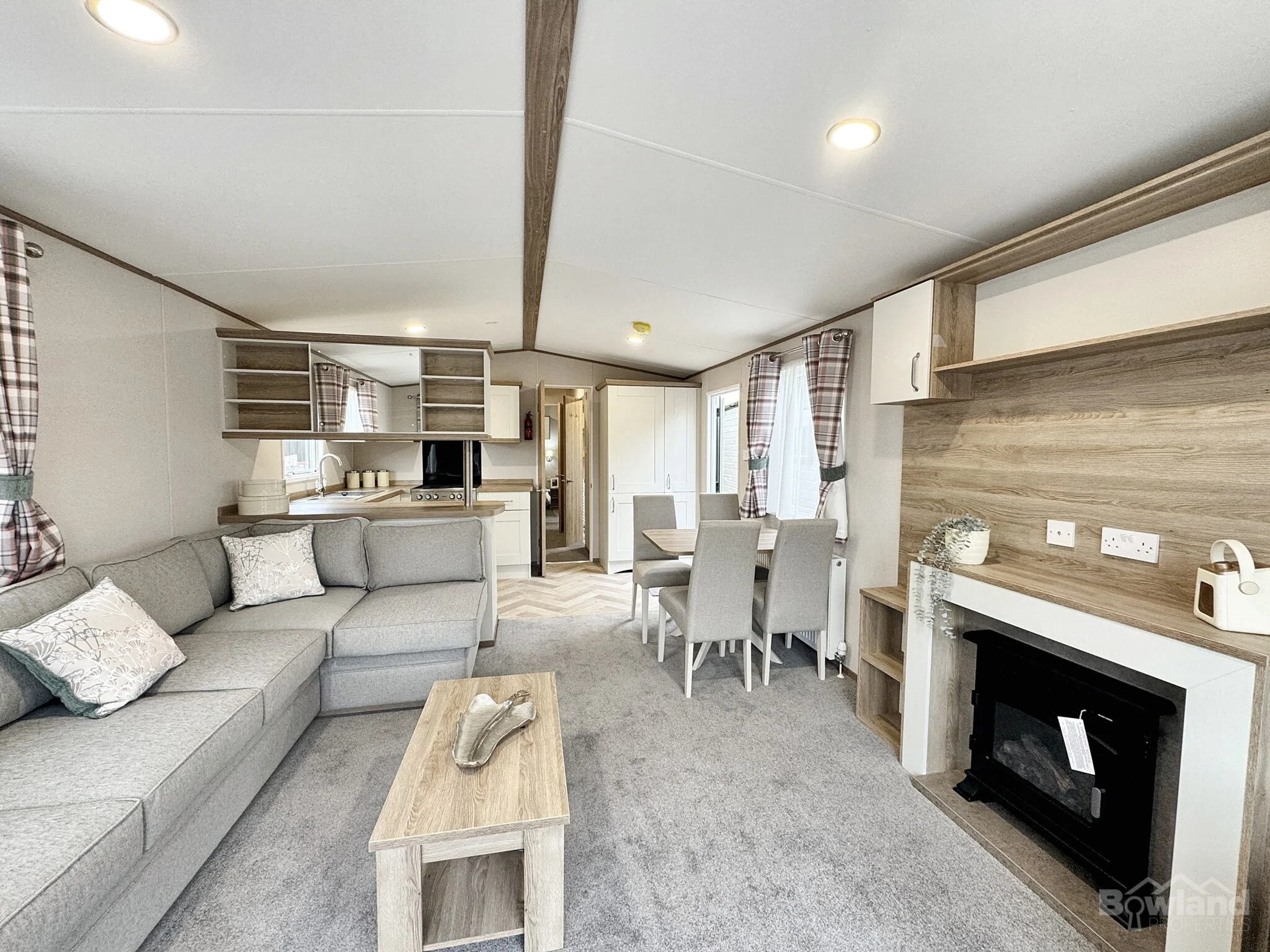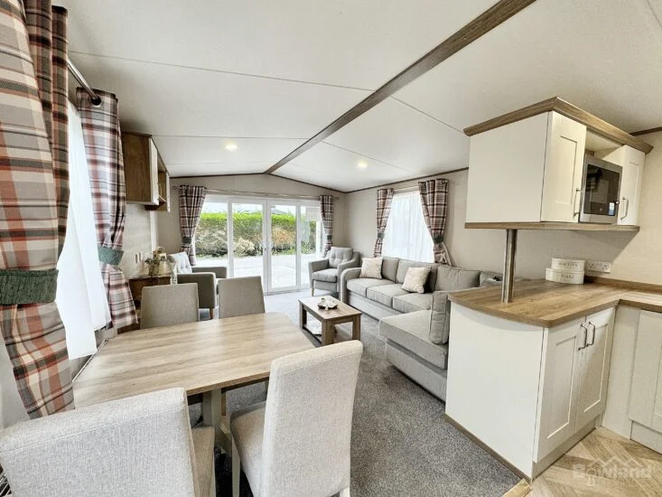 The ABI Wimbledon offers a premium, modern holiday retreat, perfect for relaxing getaways at Lakesway Lodge Park. Significantly, the heart of the home is the bright, open-plan living area. This space seamlessly connects the stylish lounge, dining space, and practical kitchen, making it ideal for entertaining or cosy family evenings by the feature fire. Comfort is key throughout, with soft-close cupboards, and quality carpet underlay. The inviting lounge boasts a chaise-style sofa that conveniently converts into a sofa bed, perfect for hosting extra guests. Furthermore, the spacious master bedroom includes a comfortable king-size bed with lift-up storage. Moreover, all bedrooms, including the twin, feature quality mattresses, USB sockets, and TV points. Ultimately, every detail, from the externally vented cooker hood to the thoughtful bathroom storage, ensures the ABI Wimbledon is a clever blend of style and convenience.
