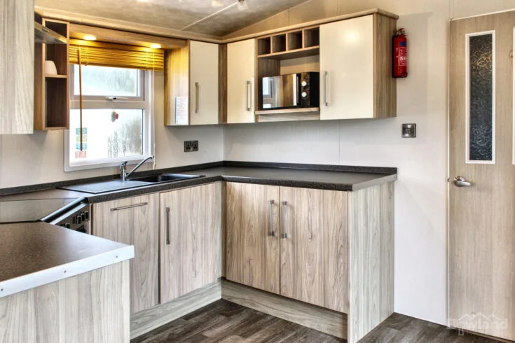 Firstly, discover the elegant Europa Sequoia, the perfect two-bedroom holiday home for sale at the tranquil Silverhill Holiday Park. This exceptional static caravan, priced at £37,996, is designed for comfort. Featuring a beautifully furnished interior with plush soft furnishings, vaulted ceilings, and a cosy electric fire in the lounge area. The modern, fully equipped kitchen boasts a full suite of integrated appliances. Including an oven, hob, microwave, full-size fridge-freezer, and dishwasher. Sleeping four, it includes a luxurious king-size master bedroom with lift-up storage and a comfortable twin second bedroom. Built to a high standard for all-year enjoyment, the Sequoia benefits from double-glazed uPVC windows and central heating throughout.