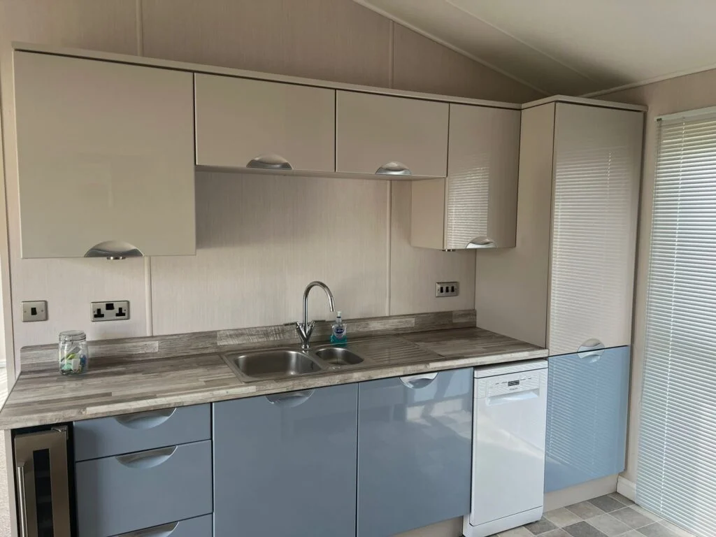 Experience the epitome of modern luxury in the Lakeland Lodge. This stunning holiday home seamlessly blends natural materials like wood and stone with clean, geometric lines and expansive windows, creating a bright and airy living space. The open floor plan encourages effortless flow between living areas, while carefully chosen textures add warmth and visual interest. Enjoy the convenience of a fully-equipped, high-end kitchen, complete with integrated appliances. Furthermore, relax in comfortable bedrooms with floor-to-ceiling windows and walk-in wardrobes. Additionally, step outside to your private decking, perfect for enjoying the surrounding scenery. This holiday home offers a perfect blend of rustic charm and contemporary design, creating a truly unforgettable retreat.