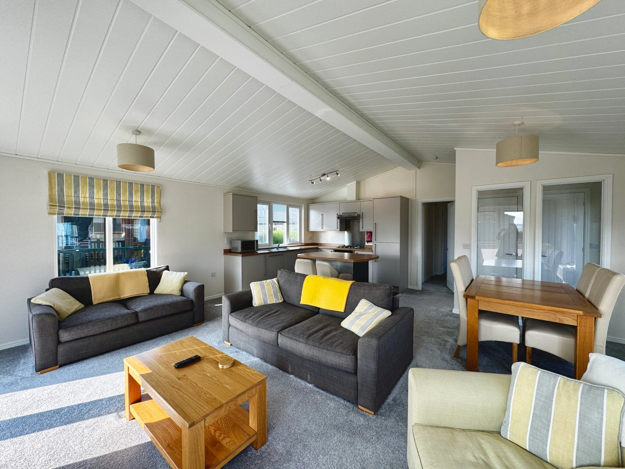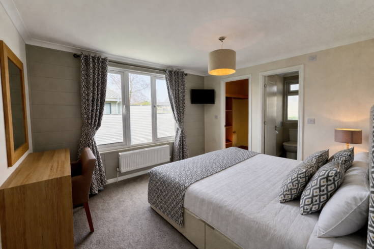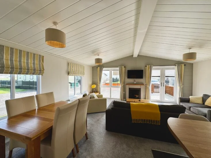 The Prestige Buckland delivers a masterclass in contemporary lodge design, providing a spacious retreat for anyone seeking a premium lifestyle. This holiday home showcases a striking vaulted ceiling and an expansive open-plan living area that seamlessly integrates the lounge, dining space, and kitchen. Furthermore, large windows and elegant French doors flood the interior with natural light, creating a bright and airy atmosphere. Both bedrooms prioritize your comfort; specifically, the master suite impresses with a walk-in wardrobe and a stylish en-suite. Beyond its aesthetics, the Buckland ensures year-round warmth and efficiency through high-quality cladding and sophisticated furnishings. Ultimately striking the perfect balance between practical durability and modern luxury for family getaways.